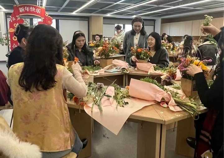 作为本届文化节亮点活动之一,《花样年华》职工花艺公益课堂同步开课。专业花艺师现场讲解花艺知识,手把手指导插花实践。女职工们精心修剪、巧妙搭配,将一束束鲜花创作成为错落有致、意蕴优美的花艺作品。“平时工作繁忙,很少有机会参加这样的活动。今天不仅学到了花艺技能,更真切感受到了工会‘娘家人’的温暖。”参加活动的女职工张女士手捧作品,喜悦之情溢于言表。
