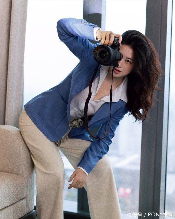 当然衬衫的扣子设计也恰到好处,加上朱珠自带成熟气质,长发披肩,尽显女性多面魅力。